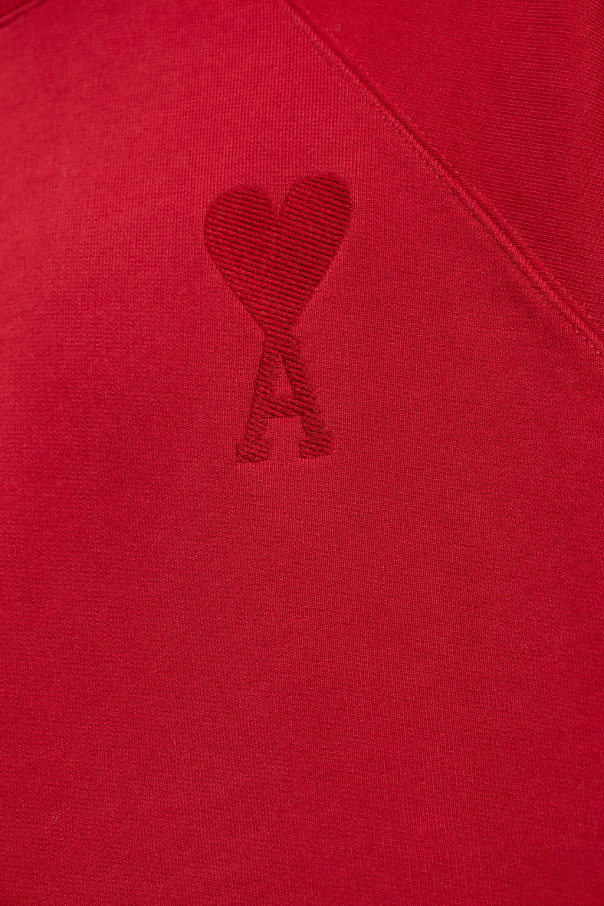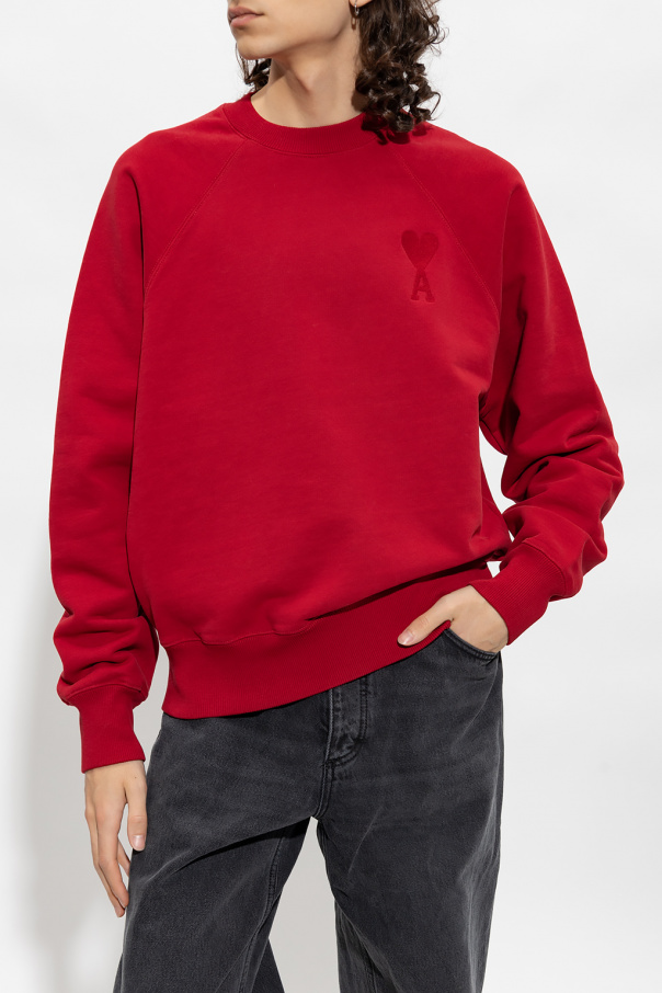 Red crewneck from Ami Alexandre Mattiussi. Crafted from organic cotton, this style features logo embroidery, a slip pocket, long sleeves and an elasticated collar, bottom hem and cuffs.