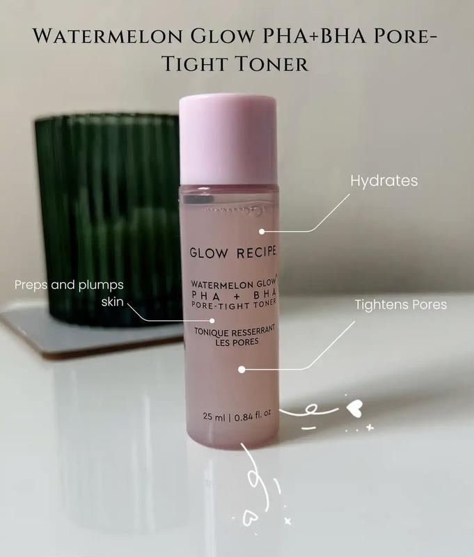 Нежный арбузный бесспиртовый тонер Watermelon Glow с кислотами PHA (Polyhydroxy acid) и BHA (Betahydroxy acid) увлажняет кожу и минимизирует поры.