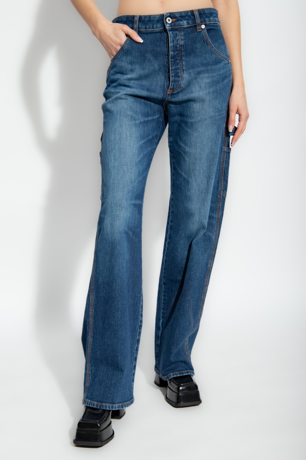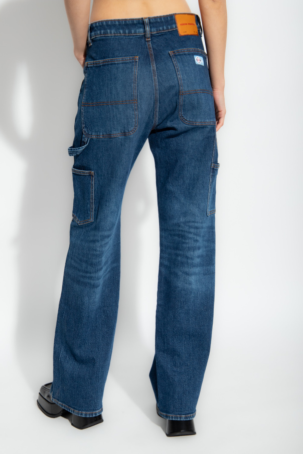 Dark blue jeans from Heron Preston. Fastened with buttons, this straight leg pair features logo patches at the back and seven slip pockets.
