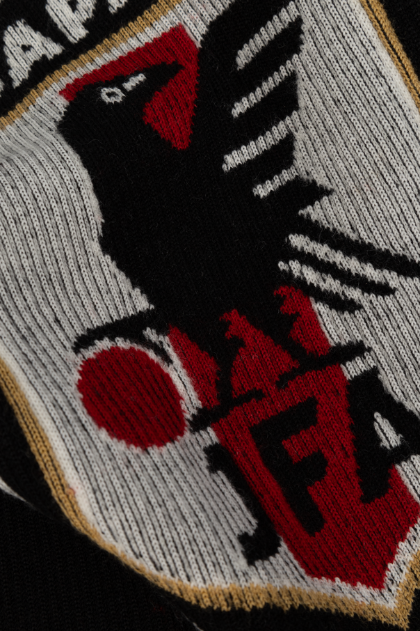 Introducing the Y-3 Yohji Yamamoto x JFA scarf, a luxurious masterpiece born from the collaboration between the renowned Y-3 brand and the Japan Football Association (JFA). This exclusive accessory showcases a harmonious blend of high-fashion and sporty elements, making it an exquisite addition to any wardrobe. Crafted from premium materials including wool, recycled polyester, and lyocell, this scarf guarantees unparalleled warmth and comfort. The dominant black color is accentuated by a striking white "Y-3" logo set against dynamic red and black patterns, reminiscent of flowing lines that add a sense of movement to the design. The iconic JFA logo, featuring a black raven on a red backdrop, is prominently displayed, further emphasizing the unique fusion of sport and fashion. The scarf's substantial size and bold design make it perfect for draping loosely around the neck, effortlessly elevating any ensemble. The elegant black fringes at the ends add a touch of sophistication and style. Why Choose This Product? Exclusive collaboration between Y-3 and JFA High-quality knit materials for warmth and comfort Bold, dynamic design with striking logos Elegant black fringes for added sophistication Perfect for both cold weather and stylish accessorizing
