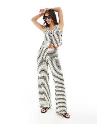 Mango crochet stripe waistocat & trousers co-ord in white