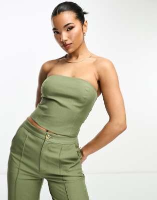 Aria Cove zip detail corset top and tailored trouser co-ord in khaki