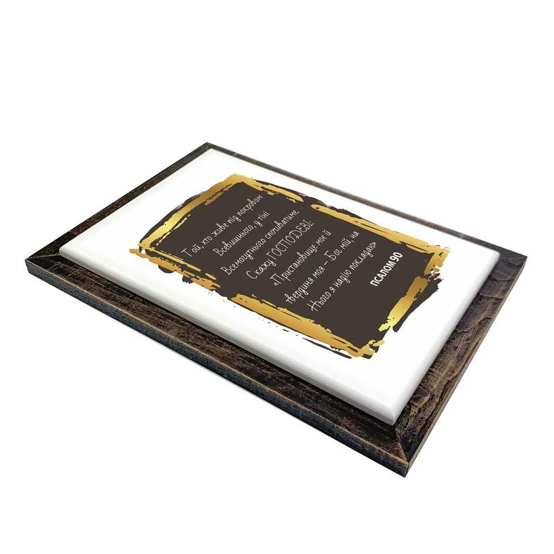 Картина з дерев'яною рамою виконана з масиву дерева. Ширина рамки - 2 см. Розмір зображення - 20х30 см. Загальним розмір картини - 24х34 см. Висота плитки, на якій нанесено друк - 1 см. Зображення нанесено на плівці методом УФ друку (стійке до УФ променів). Картина має гачок для вішання на стіну.