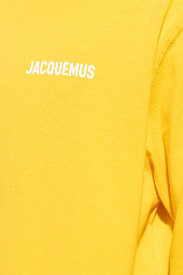 Yellow T-shirt from Jacquemus. Made of cotton, this long sleeve design features a white logo pattern, ribbed crew neck and long sleeves.