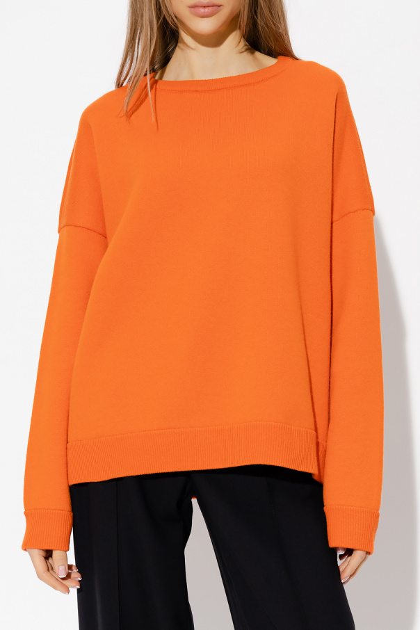 Orange loose-fitting sweater from Loewe. Made of cashmere, this design features a patch with an embossed Anagram and ribbed trims at the round neck, hem and cuffs.