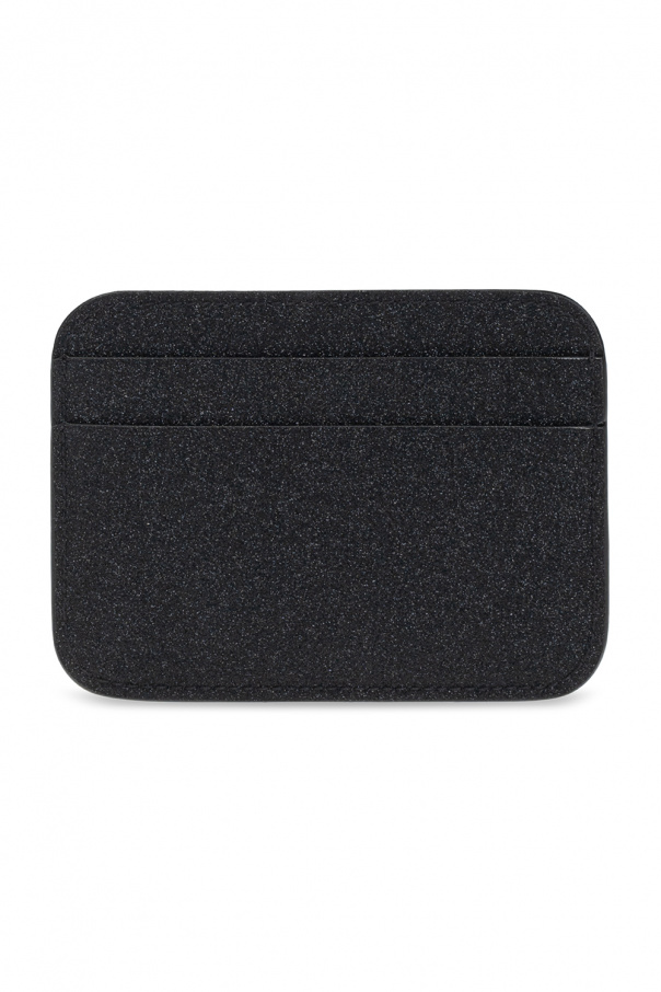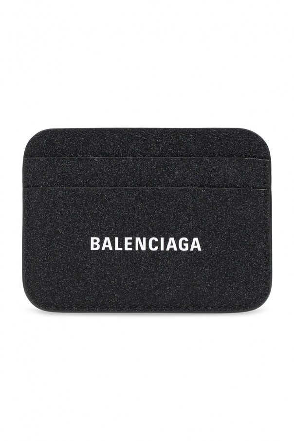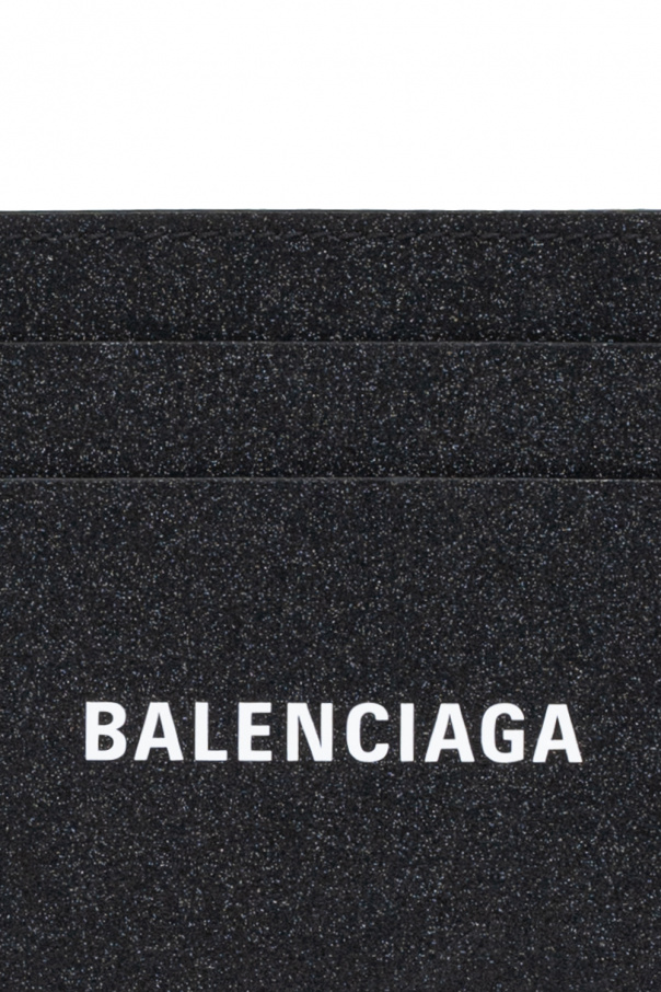 Black card holder from Balenciaga. This item features a white logo print and five card slots.
