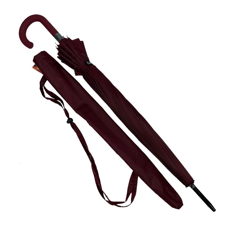 Однотонный зонтик трость на 16 карбоновых спиц - надежный защитник от дождя и