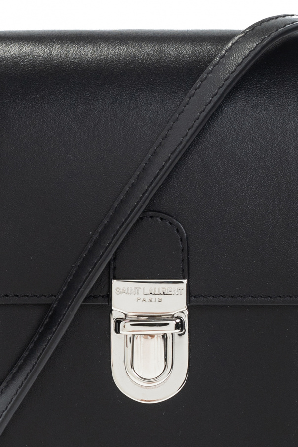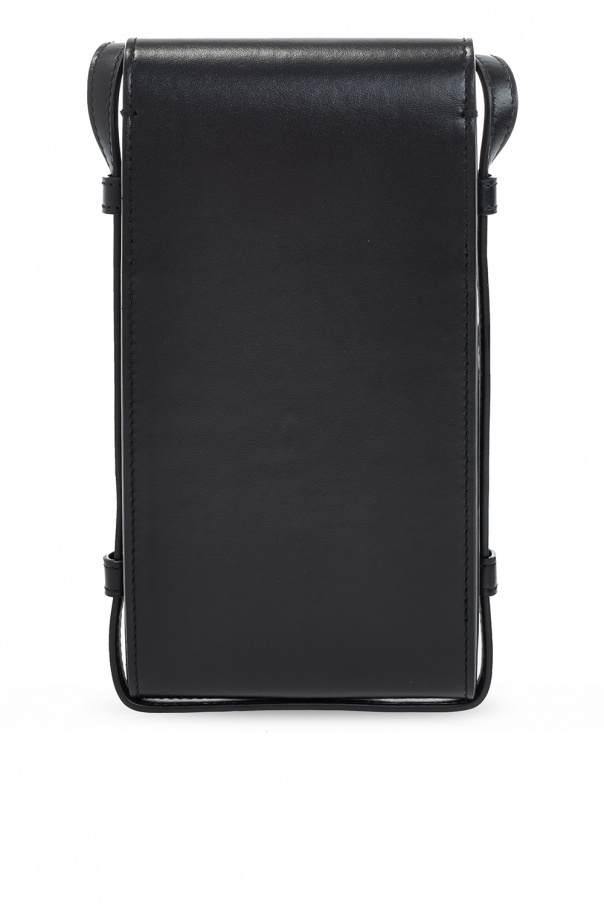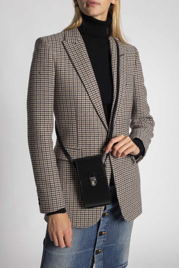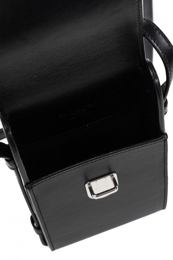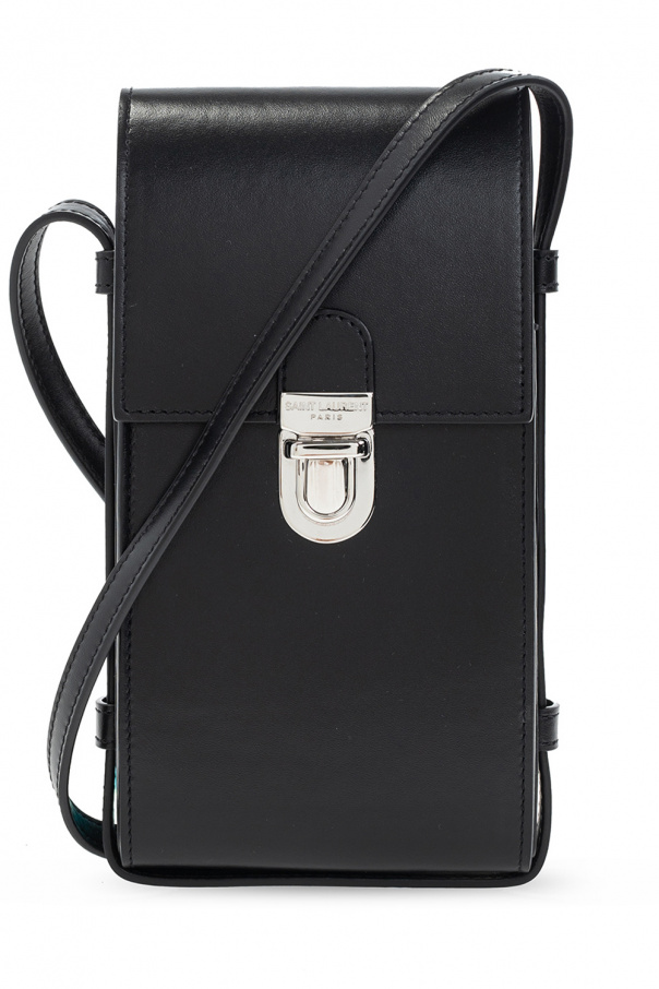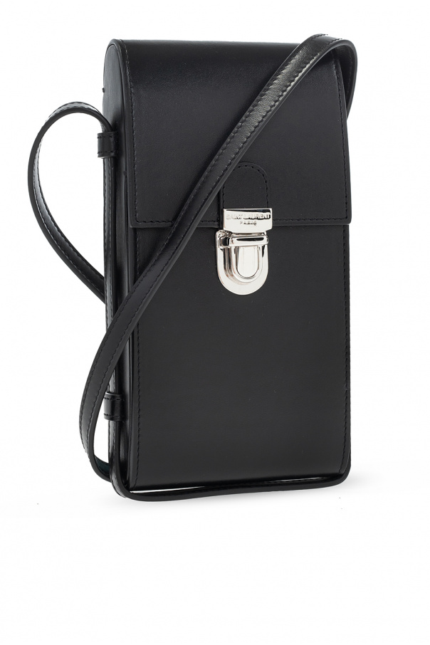 Black ‘Cyrcus King’ phone pouch from Saint Laurent. Crafted from calf leather, this model features a logo-engraved snap, adjustable strap, one internal compartment and silver-tone metal hardware.