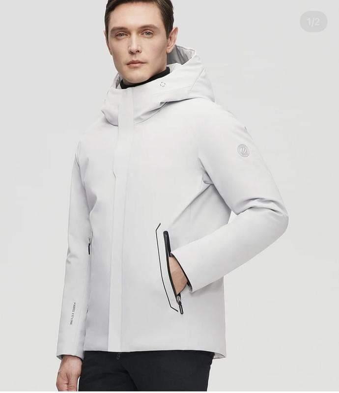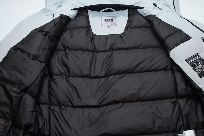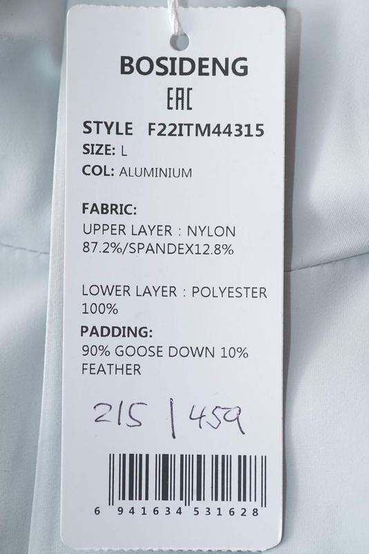 Мужская куртка-пуховик BOSIDENG, бело-серого цвета. Артикул: F22ITM44315. Снаружи 87.2% нейлон, 12.8 эластан. Наповнювач: 90% гусячий пух, 10% перо, 600 fill power. Размер: L маломерит на M (плечи 47, ПОГ 57-58, рукав 65, длина 74 см) Цена: 5299 грн.