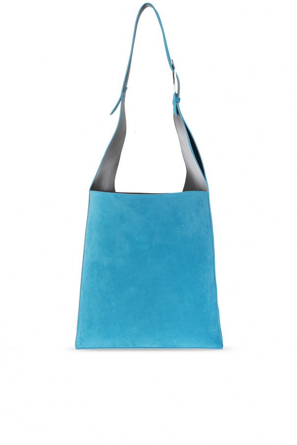 Blue ‘12PM’ shopper bag from The Attico. Crafted from suede, this model features an adjustable strap with a logo-embossed buckle, silver-tone metal hardware and one internal compartment with a snap-fastened pouch on a strap.