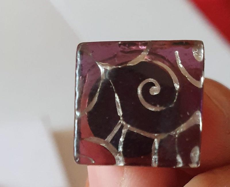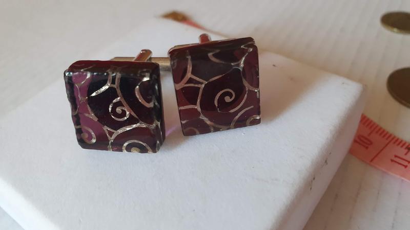 Классный аксессуар, запонки из муранского стекла - размер 2х2 см, красивое сочетание цветов- темно-фиолетовый с серебристым узором (использовано настоящее серебро, рисунок прорисован внутри стекла).