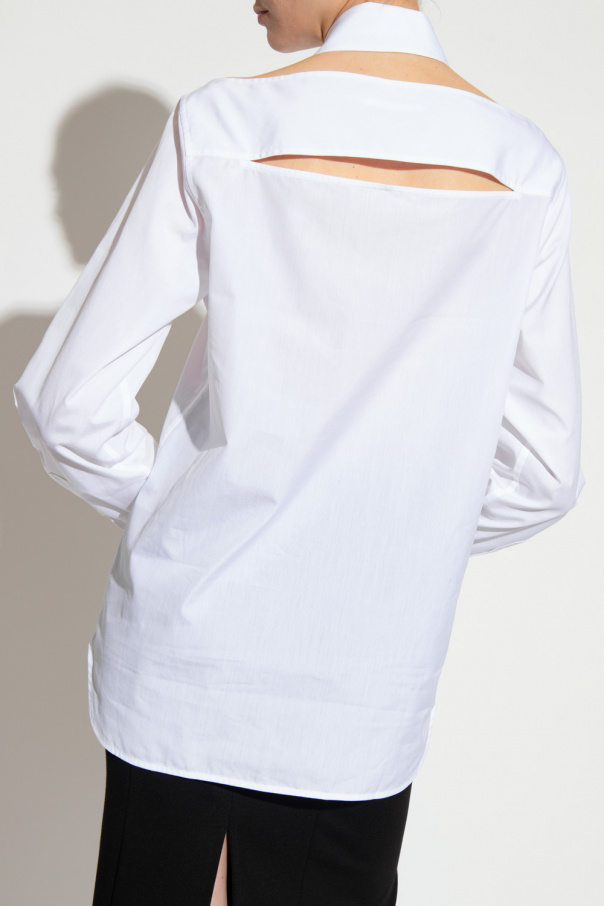 White shirt from Helmut Lang. Made from cotton, this style features button fastenings, long sleeves with button cuffs and decorative cutouts on the shoulders and back.