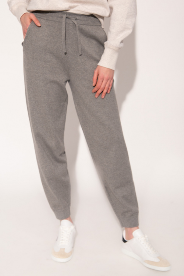 Grey ‘Kira’ sweatpants from Marant Étoile. Fastened with drawstrings, this pair features an elastic waistband, two slip pockets and elasticated cuffs.