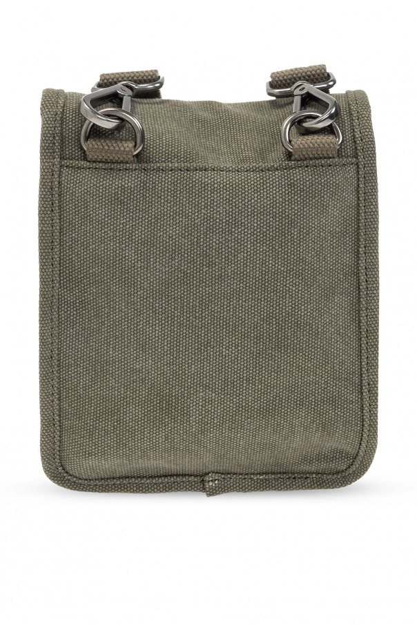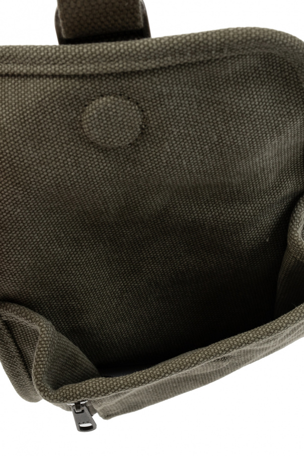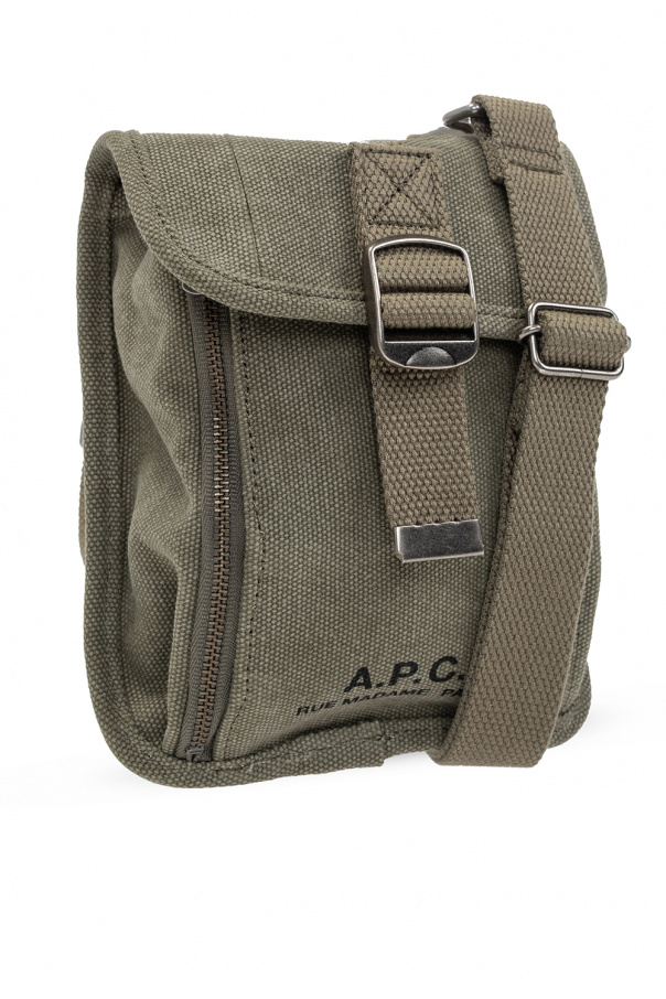 Green shoulder bag from A.P.C. Fastened with a magnetic snap, this design features a front zip pocket, logo print, detachable and adjustable strap, one internal compartment and silver-tone metal hardware.