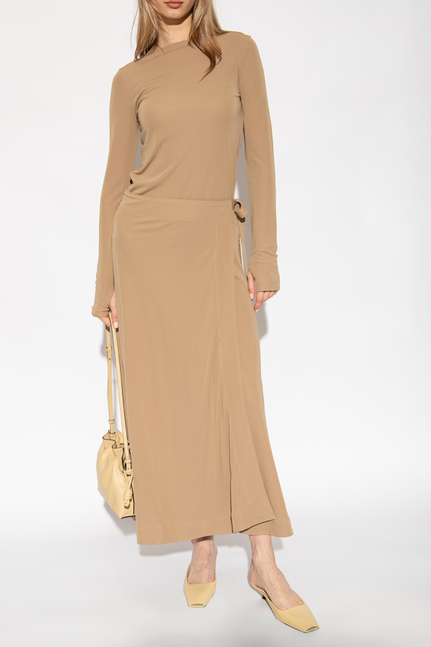 Yellowish cream heeled mules from Toteme. Made of leather, this pair features a square toe and black leather sole.