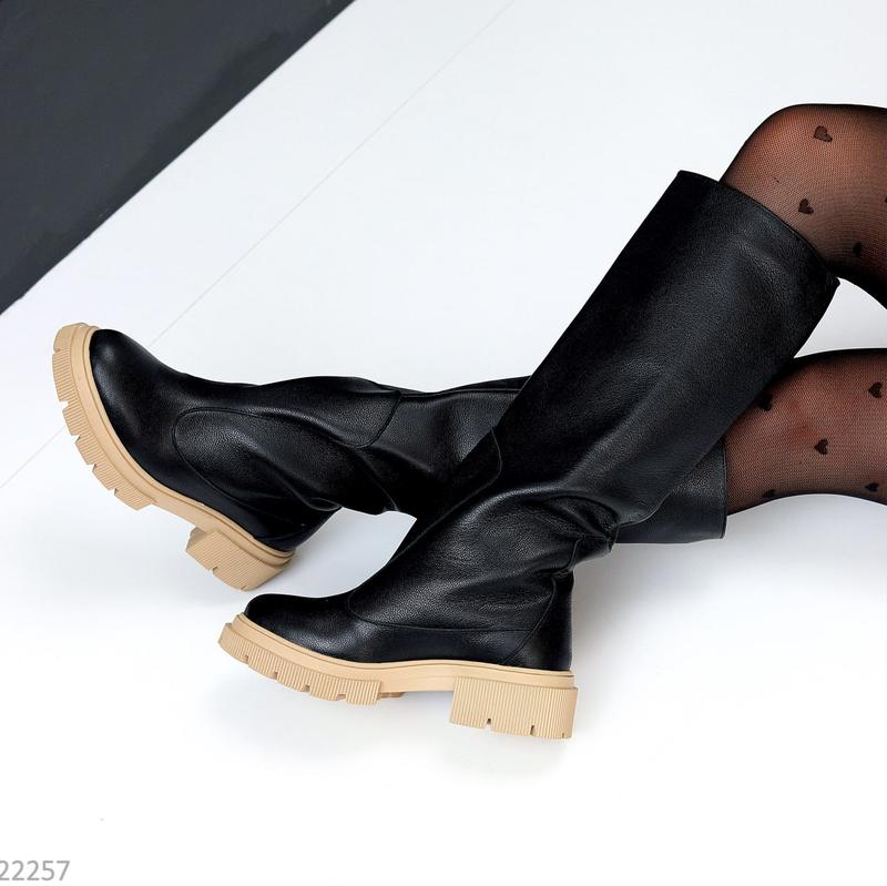 Материал верха:Кожа ,Высота каблука:Низький ,Высота изделия:Высокие ,Голенище:Стандартное ,Сезон:Зима , Осень , Демисезон ,Материал подкладки:Мех ,Тип подошвы:Плоская ,Длина стельки:25,5 см , 25 см , 24,5 см ,Описание