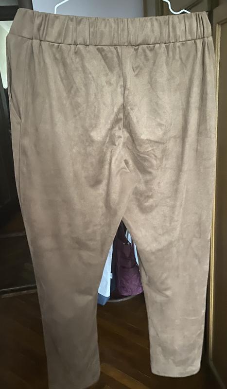 Длина 95см, пот 38см( на резинке, тянется до 48см), ширина штанины в бедре 30см, посадка 30/39см. Красивый цвет молочного шоколада. Ткань тянется