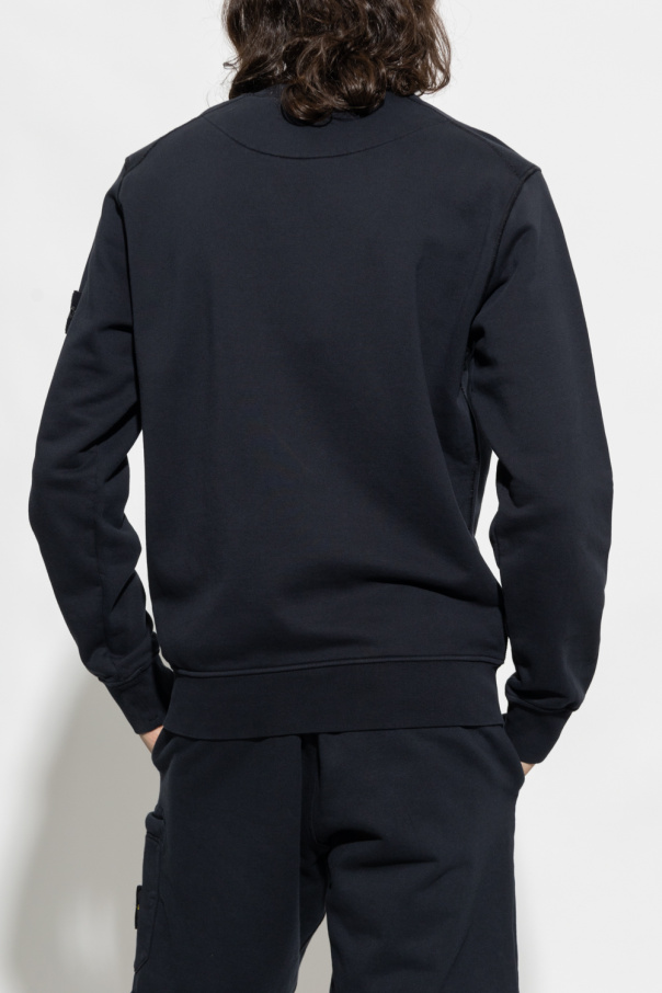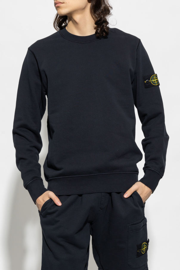 Black crewneck sweatshirt from Stone Island. Made of cotton, this design features a sleeve patch with a logo and ribbed edges.