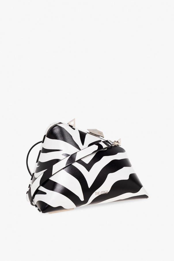 Black and white ‘Midnight’ clutch from The Attico. Made of calf leather, this item features an animal pattern, snap closure, logo print, detachable shoulder strap, silver-tone metal hardware and one internal compartment with one card slot.