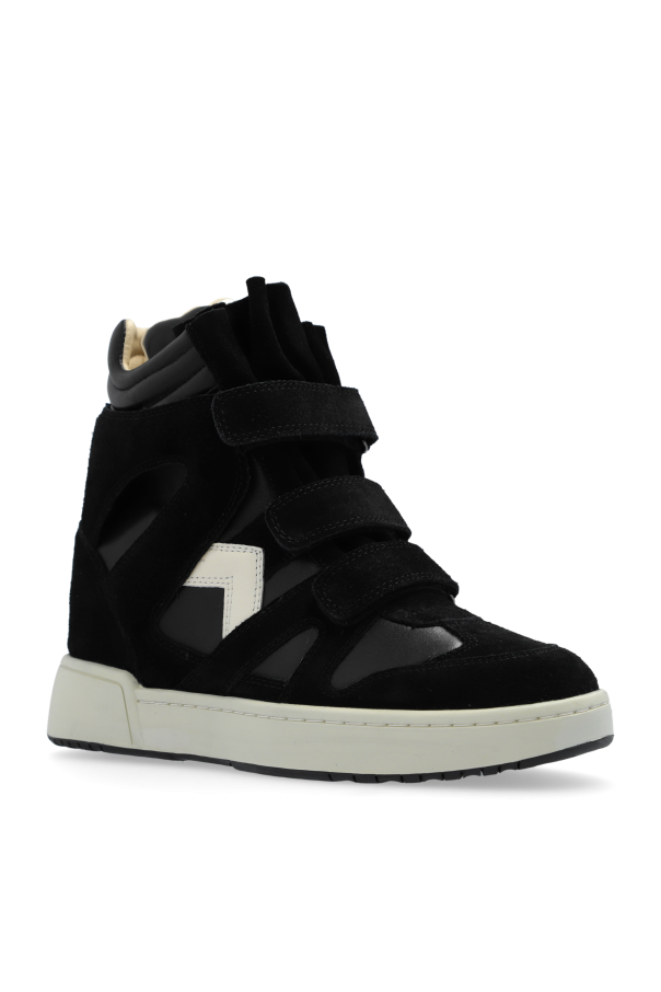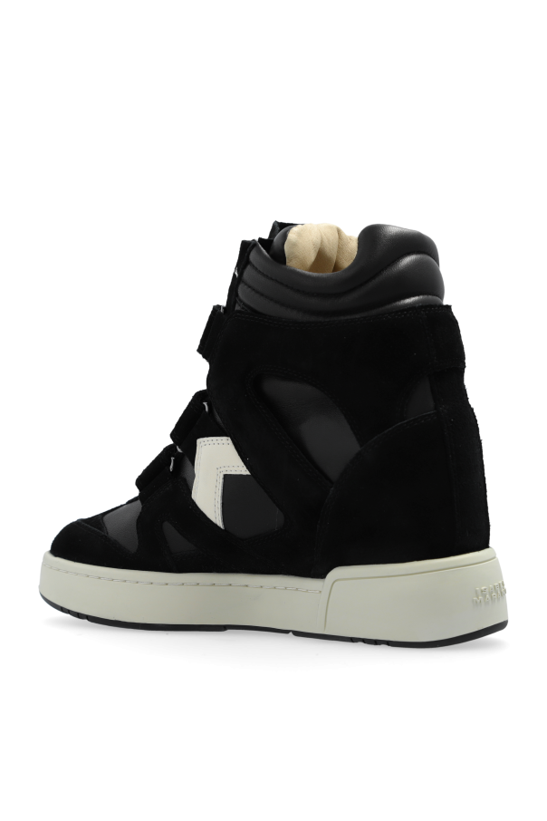 Introducing the exclusive ‘Classic NB3’ sports shoes from the illustrious collection by celebrated designer Isabel Marant. These high-profile sneakers, extending gracefully above the ankle, are a testament to refined craftsmanship and sophisticated design. The dominant black hue, accentuated by white elements, features a striking side panel in the shape of a ‘V’ or arrow, exuding a unique flair. Constructed from a luxurious blend of suede and synthetic materials, these sneakers showcase meticulous stitching and intricate paneling. Equipped with multiple wide velcro straps, the ‘Classic NB3’ ensures effortless wearability. The contrasting white rubber sole not only enhances durability but also provides unparalleled comfort. The interior, lined with light-colored leather, elevates the overall wearing experience. Emblazoned with the designer’s logo on the heel and the insole, these shoes boast an air of exclusivity. The concealed wedge heel subtly adds a few inches to your height while maintaining a sporty look. Why Choose This Product? High-profile design for added elegance Luxurious blend of suede and synthetics Comfortable and durable rubber sole Easy-to-use velcro straps Designer logo for a touch of exclusivity Concealed wedge heel for added height