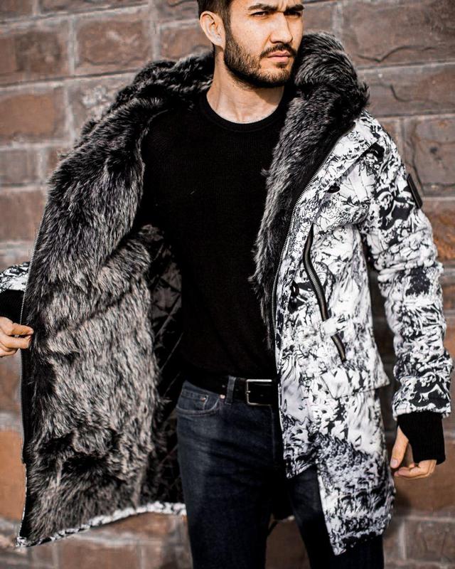Оригинальные мужские зимние куртки парки "Open" с пышной меховой отделкой.