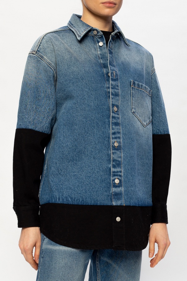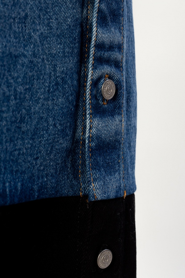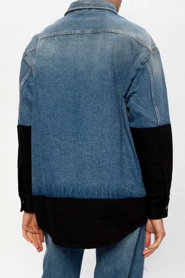 Blue and black denim shirt from MM6 Maison Margiela. Fastened with buttons, this style is complete with a slip chest pocket and long sleeves with button-fastened cuffs.