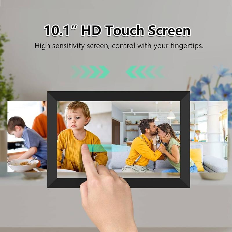 - СЕНСОРНЫЙ ЭКРАН ВЫСОКОГО РАЗРЕШЕНИЯ: сенсорный экран Super 10,1 дюйма. Дисплей сверхвысокой четкости с разрешением 1280*800. Соотношение длины и ширины 16:10. Чтобы отлично отобразить истинные цвета и каждую деталь. Экран IPS реализует 178° без тупиков. Вспоминая ваши драгоценные воспоминания. Просматривайте фотографии, удаляйте видео или приостанавливайте слайд-шоу одним быстрым касанием пальца. Яркость и спящий режим можно настроить в настройках по своему усмотрению.