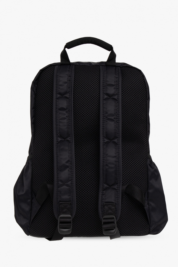 Black backpack from Hunter. Made of recycled fabric, this model is complete with a two-way zip, logo patch in white and red, half-round handle, two slip pockets, one zip pocket, adjustable shoulder straps, black metal hardware and one internal compartment with one slip pocket.