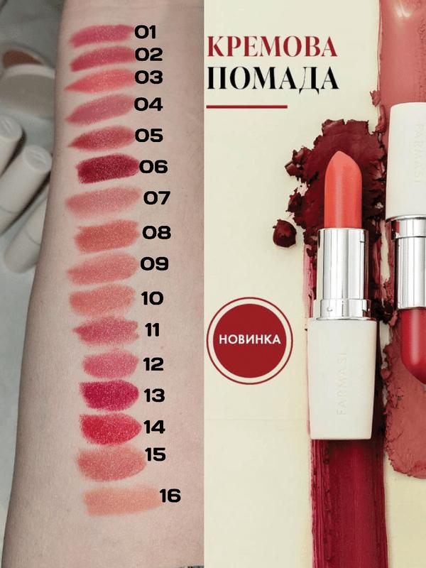 - Не содержит парабены, ароматизаторы и вредные компоненты.Коллекция кремовых помад для губ Farmasi обладает широкой палитрой оттенков,