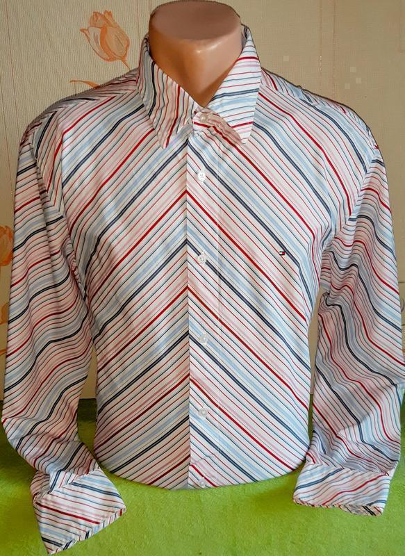 Шикарная белая рубашка в разноцветную полоску Tommy Hilfiger 80's 2 ply fabric made in Mauritius. Рубаша премиум класса. Шикарное качество. Грудь декорирована вышивкой в виде небольшого логотипа Tommy Hilfiger. Прямой крой. По бокам разрезы для лёгкости движений. Ткань рубашки сделана из нитей двойного кручения, то есть одна нить на самом деле представляет собой две нити, плотно скрученные вместе.