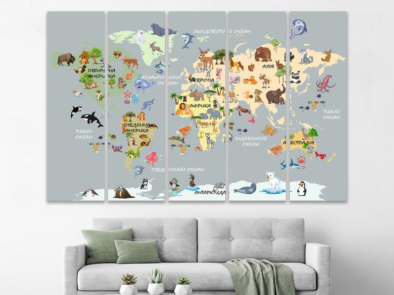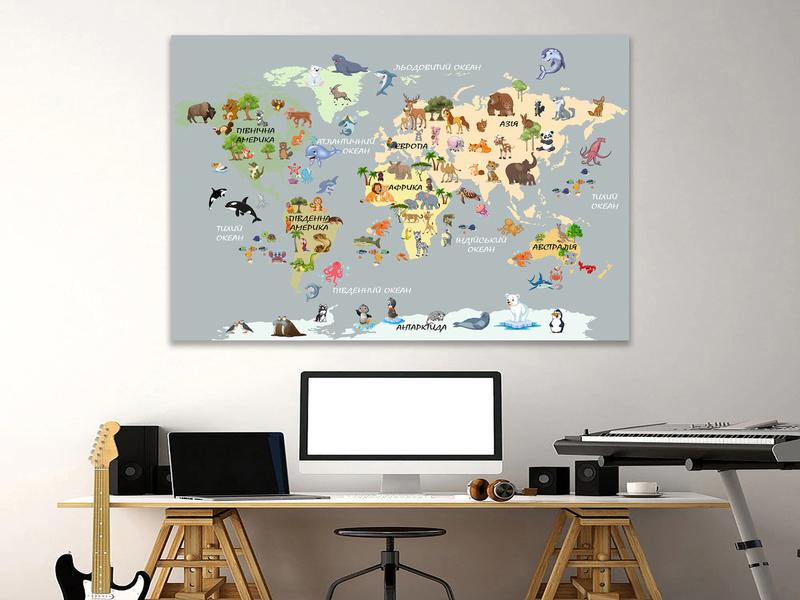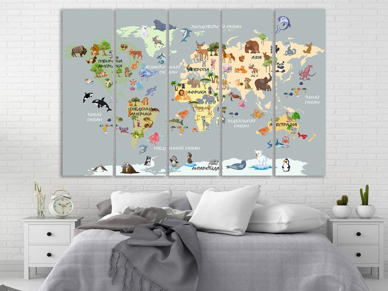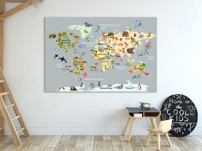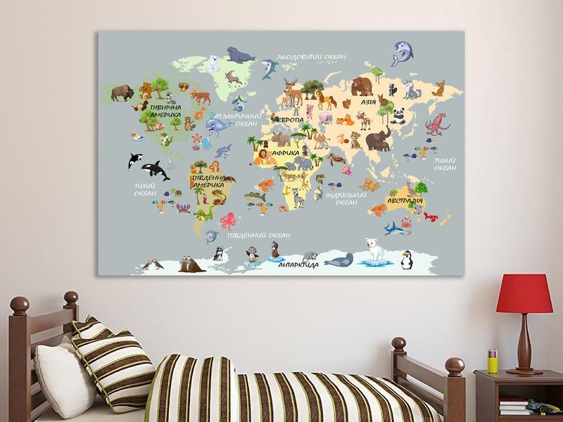 Картина в дитячу кімнату з картою світу , декор для дитячої, картини на