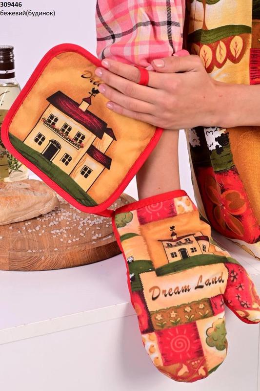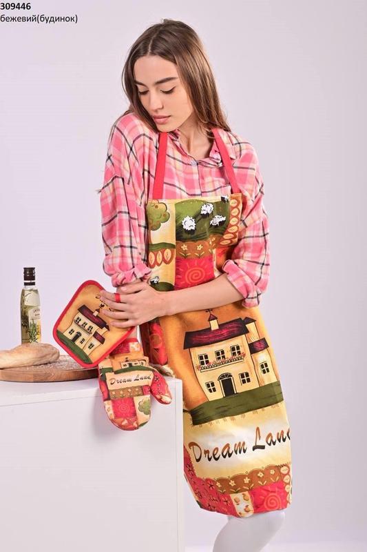 фартух (70x80 см), кухонну прихватку і рукавицю. Яскравий барвистий дизайн