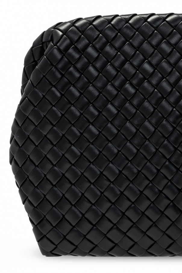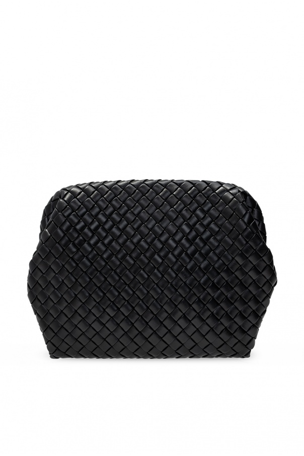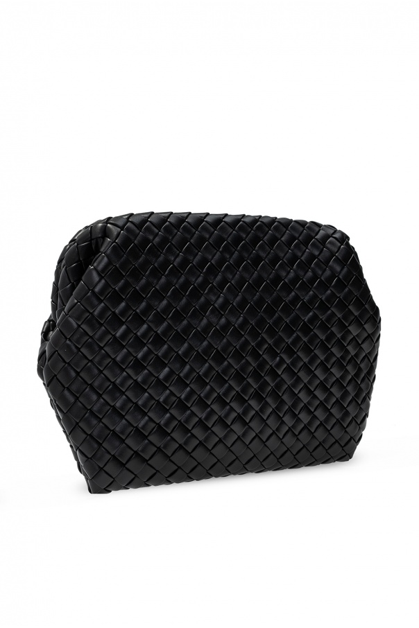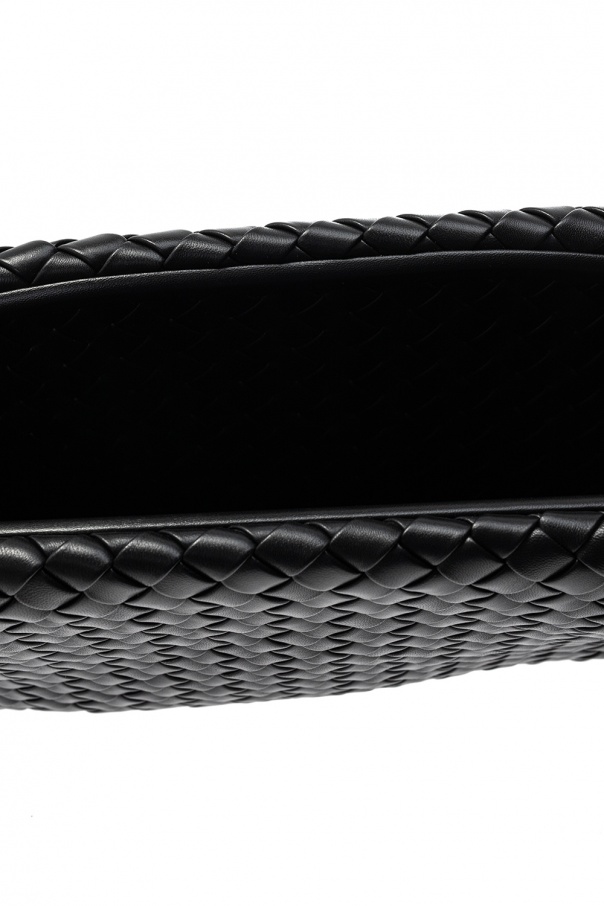 Black 'Clasp' hand bag from Bottega Veneta. Size medium. Crafted from calf leather with the label's iconic 'Intrecciato' weave, this design is complete with magnetic fastener and one internal compartment.