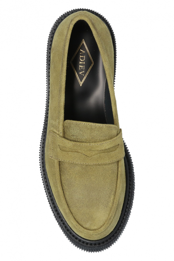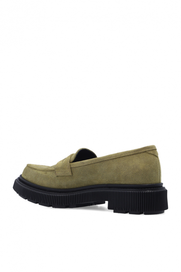 Green ‘Type 159’ loafers from Adieu Paris. Made of leather, this pair rests on a black rubber sole.