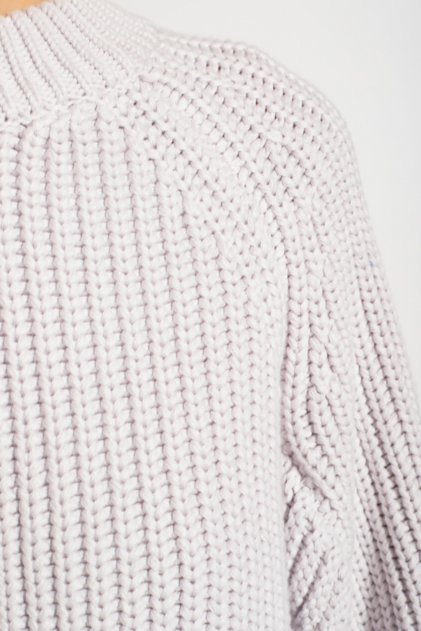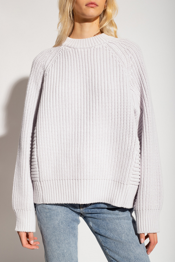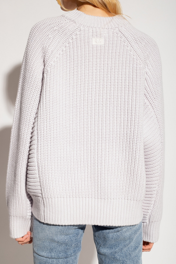 Light grey ‘Tao’ sweater from Eytys. Knitted from cotton, this garment features a round neck, long sleeves and rubber logo patch at the back.