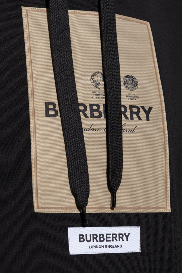 Black ‘Owie’ sweatshirt from Burberry. Crafted from cotton, this garment features a logo patch, two slip pockets, drawstring hood and ribbed trims at the hem and cuffs.