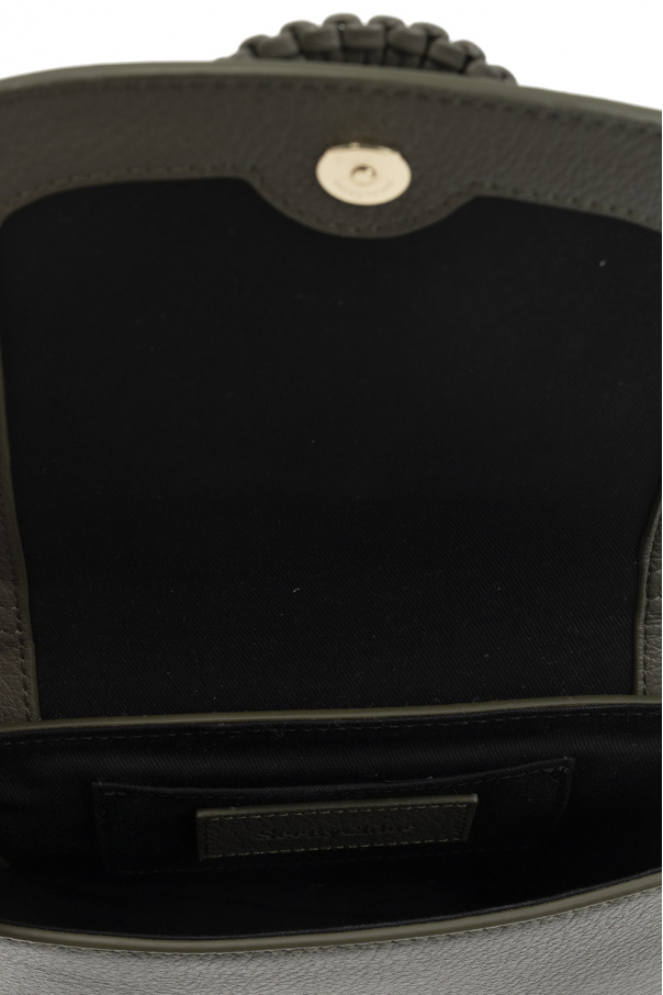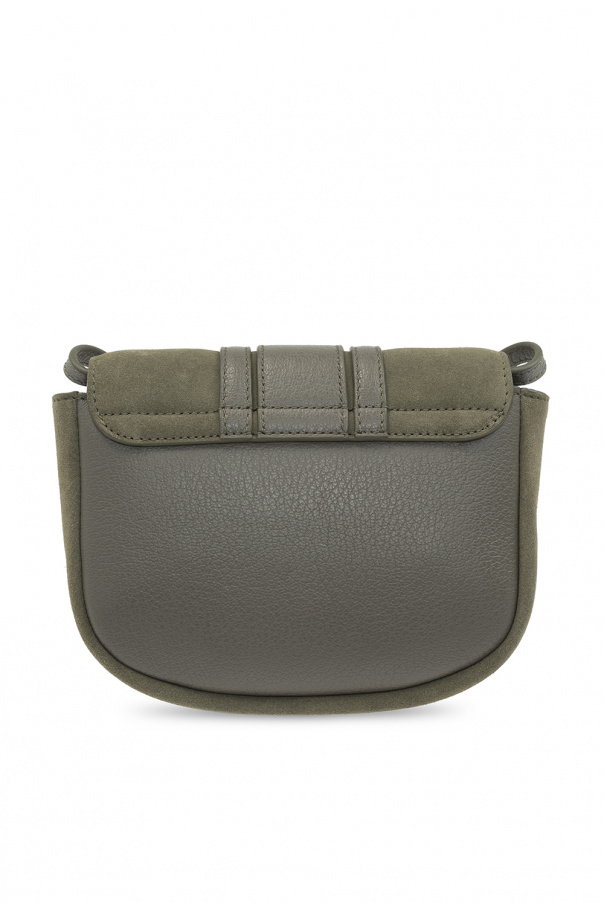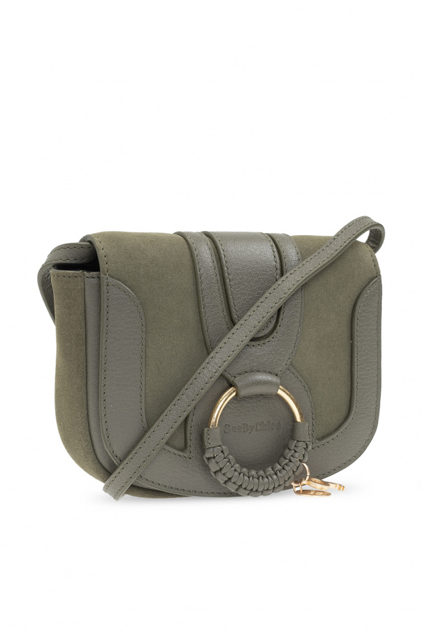 Green ‘Hana’ shoulder bag from See By Chloé. Crafted from leather and suede, this item fastens with a magnetic snap and is decorated with an embossed logo and a ring braided with leather and enriched by logo charms. It is complete with an adjustable strap, gold-tone metal hardware and one internal compartment with one slip pocket.