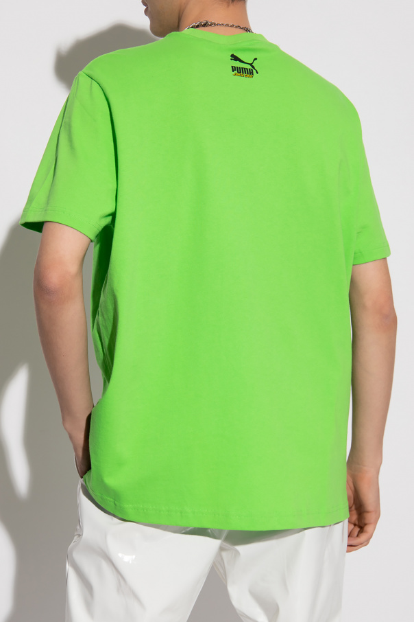 Neon green crewneck T-shirt from Puma x Santa Cruz. Crafted from cotton, this garment showcases the label’s multicolored logo print.