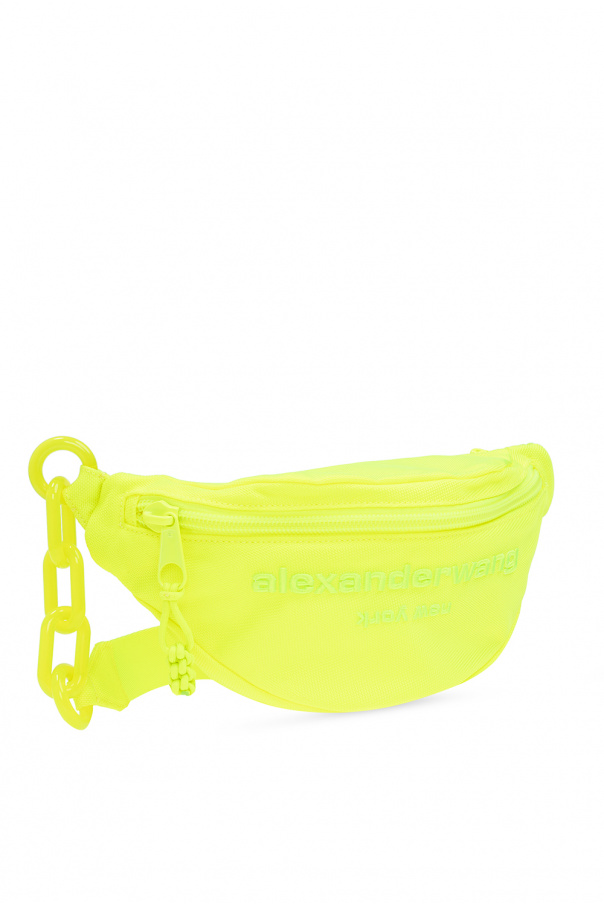 Neon yellow belt bag from Alexander Wang. Fastened with a zip with a tassel, this design is decorated with a neon yellow logo embroidery, adjustable strap with chain inserts and one internal compartment.