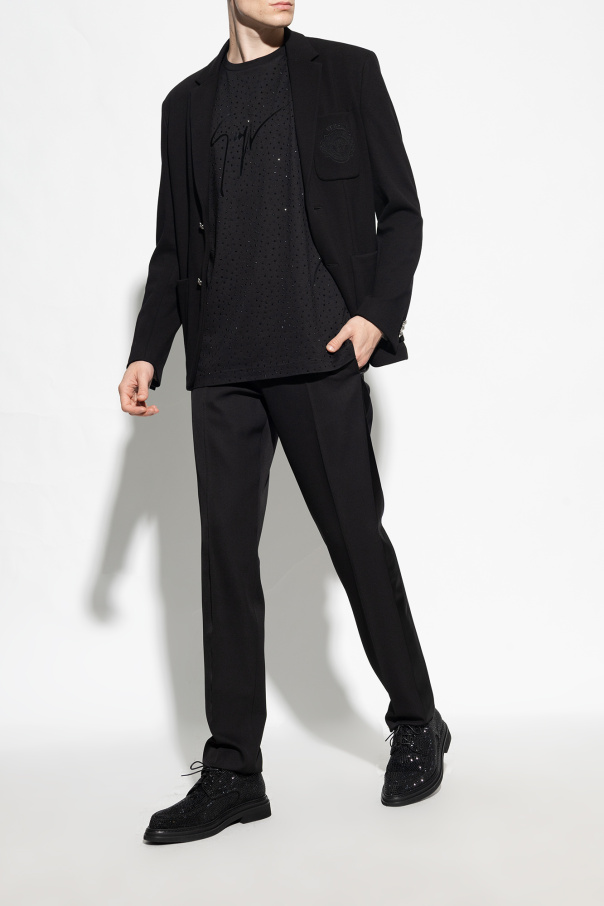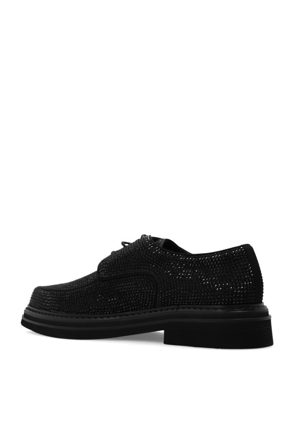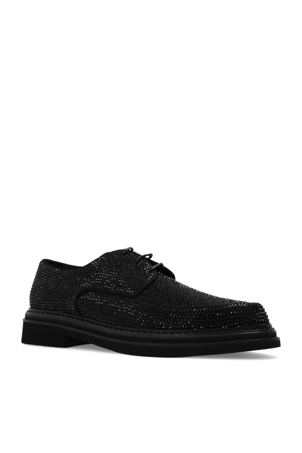 Black Derby shoes from Dolce & Gabbana. Made of suede completely covered with sparkling appliqués, this lace-up model sits on a black rubber sole.
