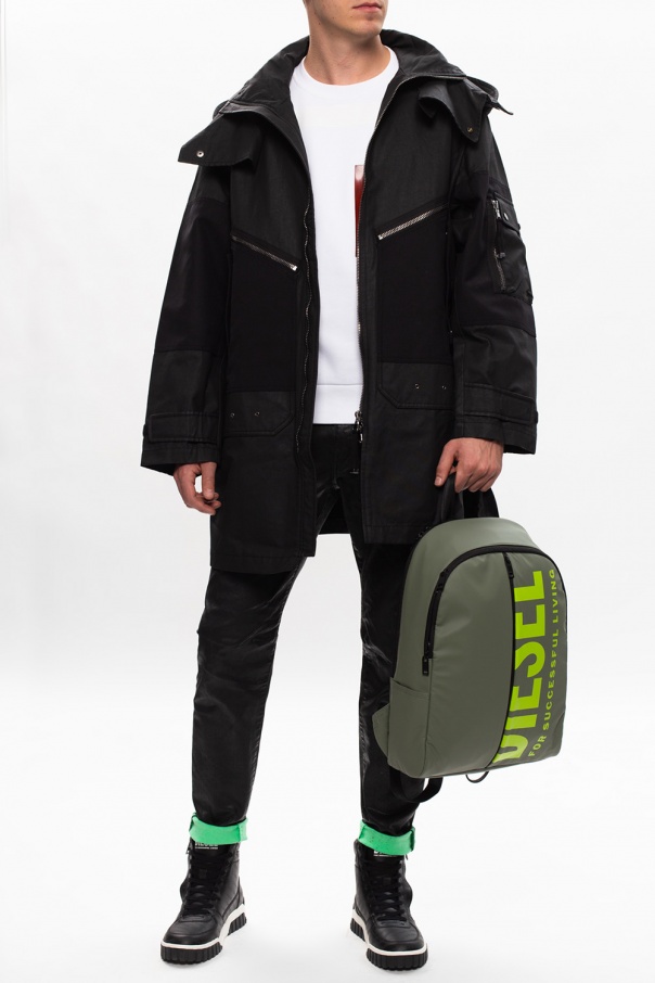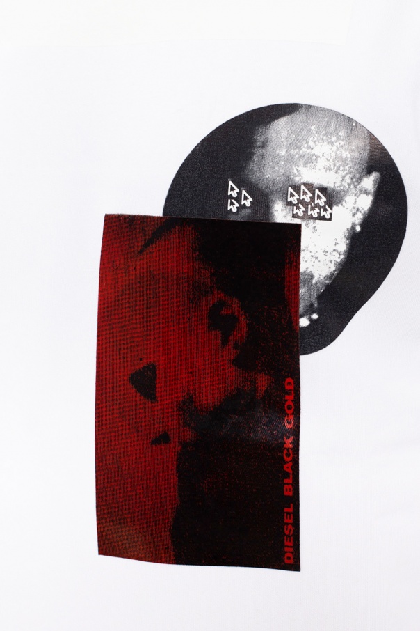 White crewneck sweatshirt from Diesel Black Gold. Crafted from cotton jersey, this garment was styled with black and red tactile graphic prints on the front and embroidered lettering on the back. The design is finished with rib-knit trims.