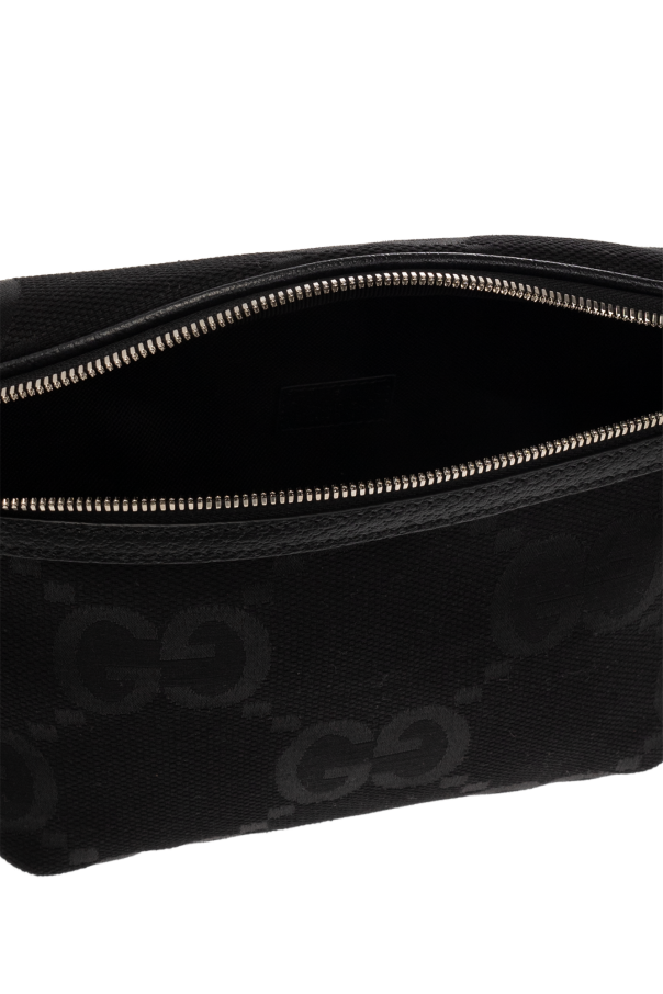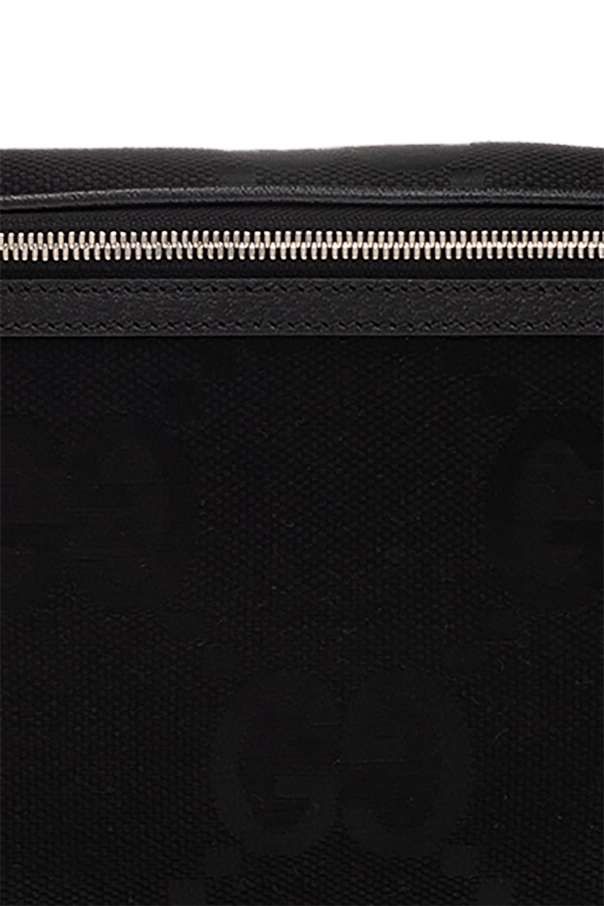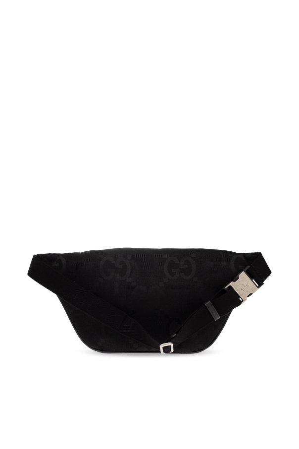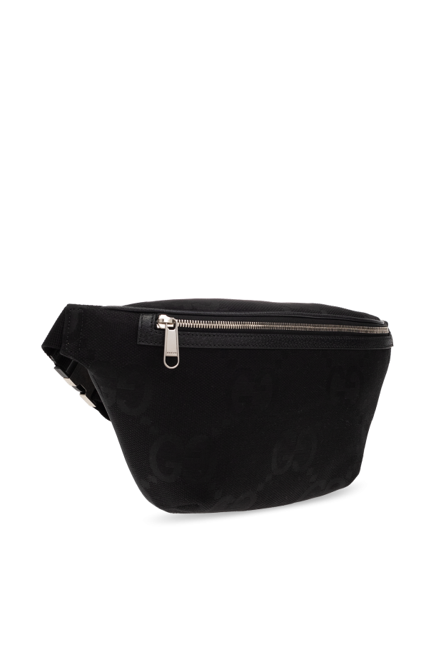Black belt bag from Gucci. Crafted from Jumbo GG, this model features a zip fastening, adjustable belt, one internal compartment and antique silver-tone metal hardware.