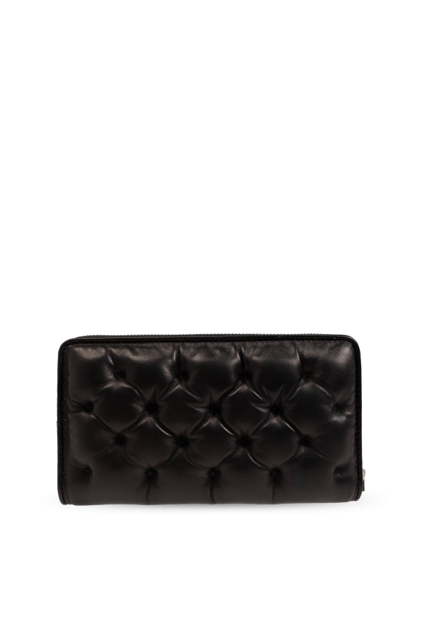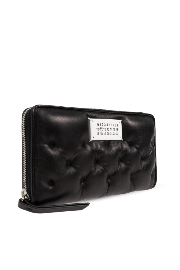 Introducing the Black Quilted Leather Wallet from the exclusive fashion collection by Maison Margiela. This elegant accessory is meticulously crafted from premium leather, featuring a distinctive quilted pattern that exudes luxury and sophistication. The wallet boasts a sleek rectangular shape with rounded corners, making it the perfect size to fit in a handbag or larger pocket. A secure silver zipper closure ensures the safety of your essentials, while the interior is thoughtfully designed with multiple compartments, including two bill pockets, a zippered coin pocket, two slip pockets, and eight card slots. On the exterior, the wallet is adorned with the iconic white label displaying numbers from 0 to 23, with the number 11 prominently highlighted, a unique identifier of the Maison Margiela brand. This feature adds a touch of exclusivity and recognition to the piece. Why You Should Buy This Product Luxurious Material: Made from high-quality leather with an elegant quilted design. Functional Design: Multiple compartments for bills, coins, cards, and other essentials. Secure Closure: Silver zipper for added security. Iconic Branding: Features Maison Margiela's distinctive white label with highlighted number 11. Perfect Size: Ideal for both handbags and larger pockets.