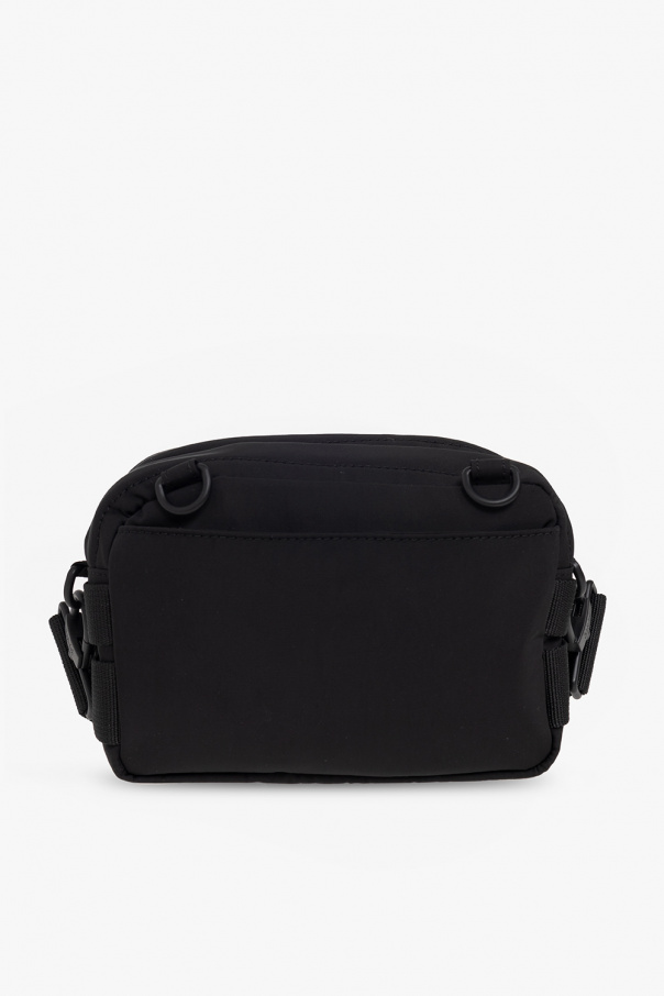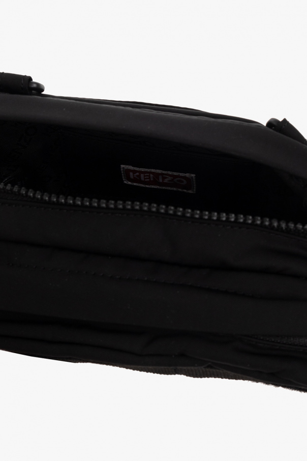 Black shoulder bag from Kenzo. Fastened with a zip, this model is decorated with multicolored patches with velcro fastening and a monogram pattern. It is complete with a back pocket with a magnetic snap, detachable and adjustable shoulder strap, black metal hardware and two separate internal compartments with one card slot.