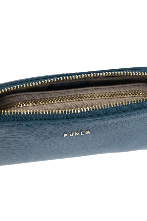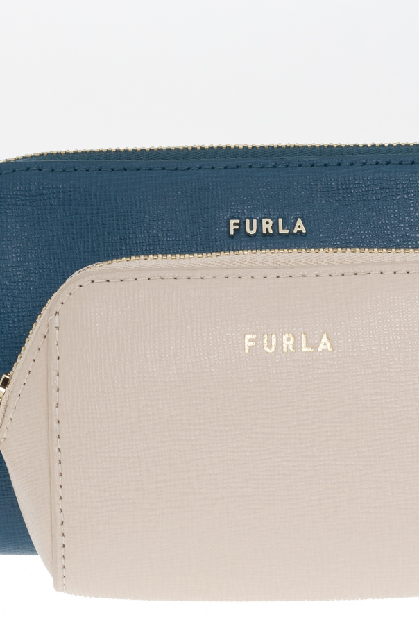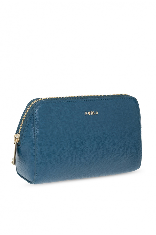 Dark blue ‘Electra’ pouch from Furla. Made of leather, this model features a zip fastening, metal logo, cream pouch with zip fastening and one internal compartment with one slip pocket.