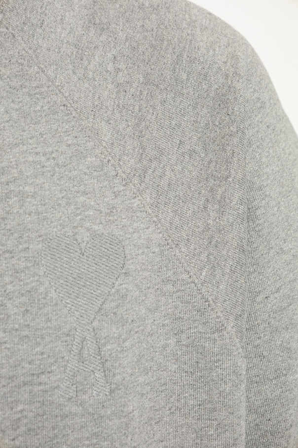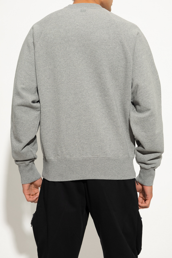 Grey crewneck sweatshirt from Ami Alexandre Mattiussi. Crafted from organic cotton with the GOTS certificate, this style features a relaxed silhouette, ‘Ami De Coeur’ embroidery on the front, the designer's logo at the back, long raglan sleeves and ribbed trims on the edges.