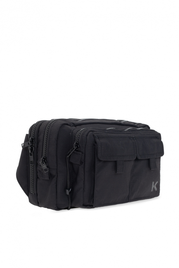 Black belt bag from Kenzo. Printed with the brand's logo, this design features zip-around fastenings, one zipped pocket and two flapped pockets with magnetic closures on the front, an adjustable strap and one internal compartment with a slip pocket. It can be worn as a backpack.