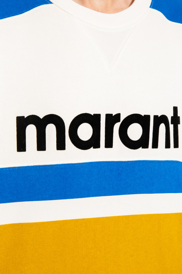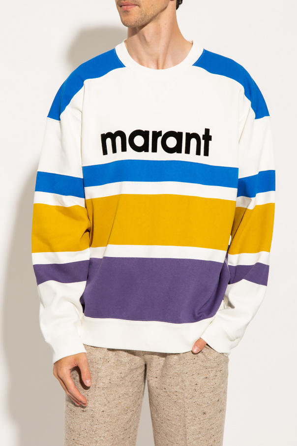 Multicolored ‘Meyoan’ crewneck sweatshirt from Isabel Marant. Crafted from cotton, this item features a black logo with a velvet finish and ribbed trims at the hem and cuffs.