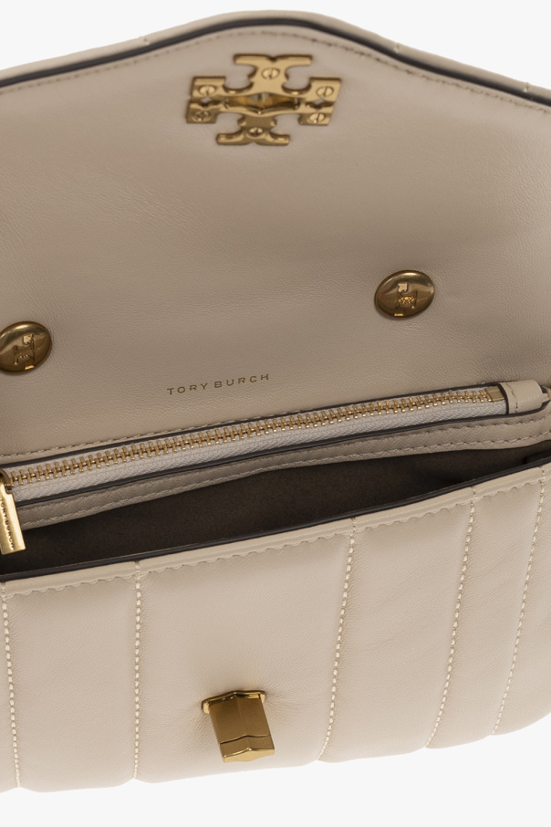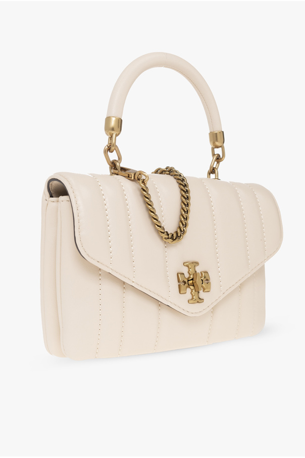 Cream ‘Kira Mini’ shoulder bag from Tory Burch. Made of lamb leather, this model fastens with a twist closure with a Double T logo and is complete with a detachable and adjustable shoulder strap with chain inserts, antique gold-tone metal hardware and two separate internal compartments with one zip pocket and three card slots.