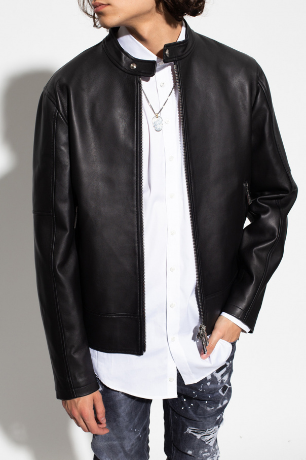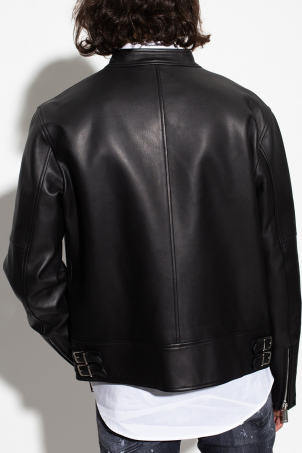 Black jacket from Dsquared2. Made of lamb leather, this garment features a two-way zip, two zip pockets and a silver-tone metal hardware.